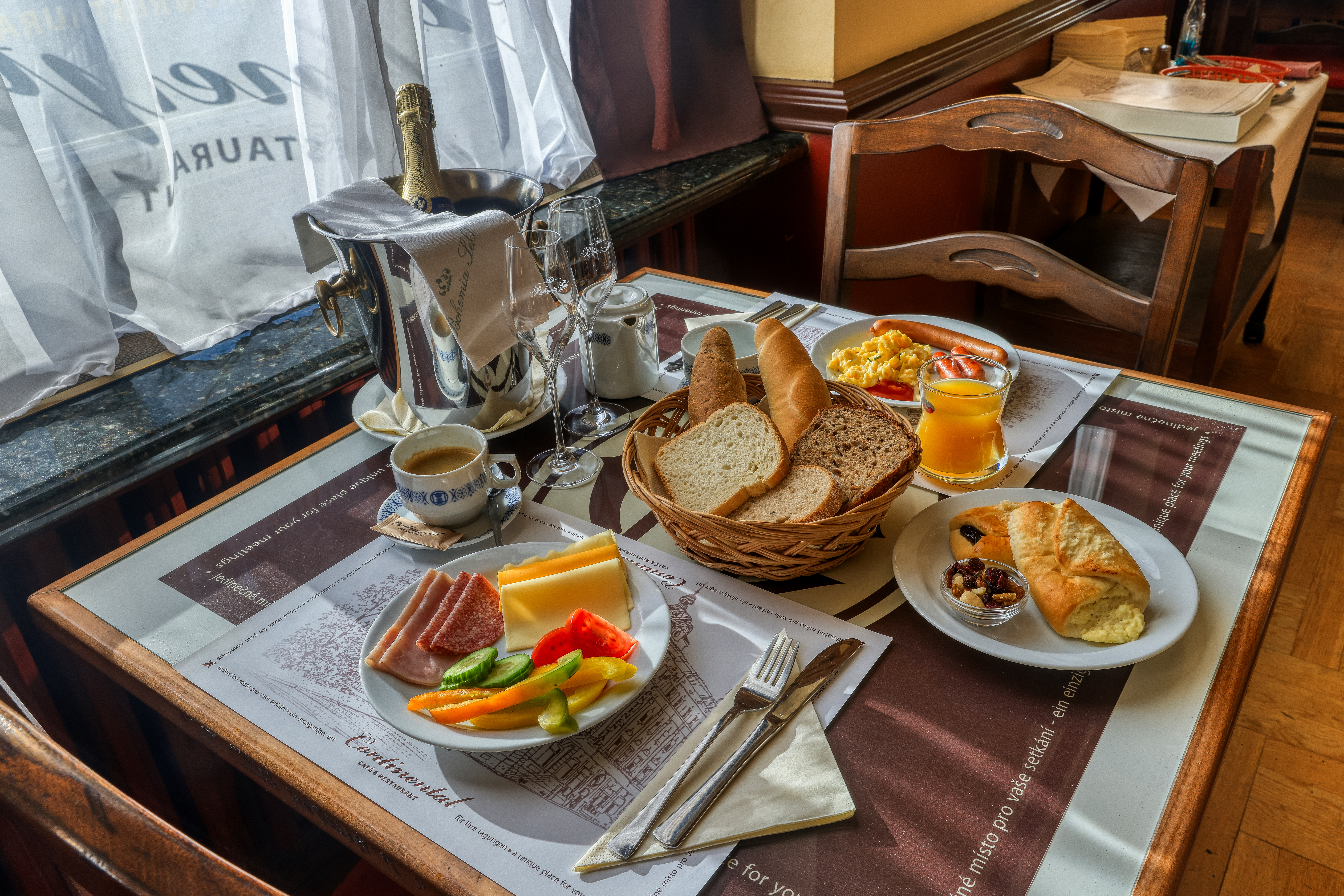 V kavárně hotelu Continental se stylově snídalo už v době první republiky, a i dnes zve na výborné snídaně, které se podávají formou švédských stolů, sezónní nápojové speciality, ale i program, který vše skvěle doplňuje. Vyhlášené snídaně se ve všední den podávají od osmi do desíti, o víkendu od osmi do půl jedenácté, takže i ti, kteří si déle pospí, budou jistě spokojení.